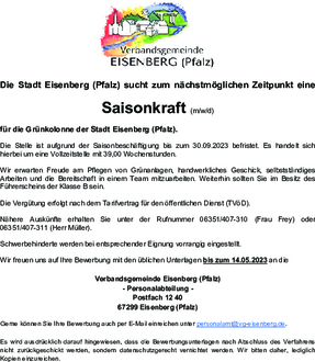 Gerne können Sie Ihre Bewerbung auch per E-Mail einreichen unter personalamt@vg-eisenberg.de.