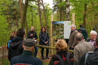 Landesforsten Rheinland-Pfalz und Pfalz.Touristik haben am heutigen Samstag eine Infotafel der ganz besonderen Art vorgestellt. Das neue „UFFBASSE! Wimmelbild“ ist die Fortsetzung der erfolgreichen Kampagne für mehr Rücksicht und Naturschutz. Im vergangenen Jahr war die Kampagne vor allem in den Frühlings- und Herbstmonaten online und in den sozialen Medien sichtbar. Besonders beliebt waren die kurzen Videoclips mit „Winzerbu“ Tim Poschmann vom Boulevardtheater Deidesheim. Pünktlich zur neuen Saison sollen Besucher nun auch draußen in der Natur auf die wertvollen Hinweise für ein gutes und nachhaltiges Miteinander stoßen.