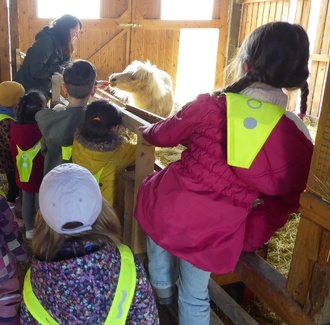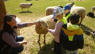 Danach ging es zu den ungeduldigen Schafen, die bereits mit lautem Blöken auf sich aufmerksam machten. Mit einem Eimer Futter kehrte Ruhe ein und auch die vorher etwas ängstlichen Kinder konnten mutig den großen Stall betreten. Nicht nur Schafe waren im Stall zu entdecken, sondern auch Ponys und Kaninchen.