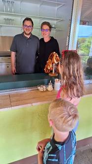 Bei dem Angebot an kühlen Getränken und leckeren Snacks ist ihm Fairness und Nachhaltigkeit besonders wichtig. Mit abwechslungsreicher Verpflegung in guter Qualität möchte Fellhauer den Gästen im Eisenberger Waldschwimmbad den Sommer verschönern. Fairness versteht er dabei in doppelter Hinsicht: mit angemessenen Preisen und mit Faitrade-Produkten wie Tee und Eis im Sortiment. Außerdem ist derzeit eine Abräumstation in Umsetzung, um so weit wie möglich auf Einwegverpackungen zu verzichtet. Stattdessen setzt der naturverbundene Pächter auf Glas, Porzellan und Mehrwegbecher. Eine kleine Ausnahme räumt er für Produkte wie zum Beispiel die „Pommes to go“ ein. Die werde es auch weiterhin in der Papiertüte geben. Mit wechselnden Aktionen und vielen neuen Ideen hofft Fellhauer auf einen tollen Sommer 2025.