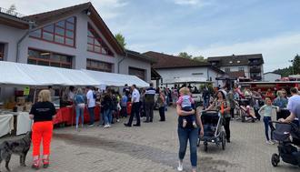 Auch für die kleinsten Besucher standen spannende Angebote zur Verfügung. An einem Stand der Feuerwehr konnten sie anhand eines Puppenhauses lernen, wie sich der Rauch bei einem Brand in einem Haus verteilt und wann ein Rauchmelder ausgelöst wird. Zudem wurde gezeigt, wie ein Feuerlöscher mit haushaltsüblichen Gegenständen gebaut werden kann. Darüber hinaus konnten die Kinder sich auf einer Hüpfburg vor dem Kindergarten austoben.