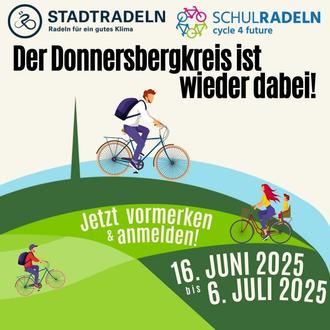 Vom 16. Juni bis zum 6. Juli wird rund um den Donnersberg wieder geradelt – das STADTRADELN geht in die 6. Runde! „Mach mit beim STADT- und SCHULRADELN! Tritt 21 Tage mit deinem Team für unseren Kreis in die Pedale und fördere gemeinsam mit anderen Radverkehr, Klimaschutz und Lebensqualität. Jeder Kilometer zählt – sei dabei und mach den Unterschied!“ – so der Aufruf der Kreisverwaltung zum diesjährigen Wettbewerb. Alle in dem Zeitraum gefahrenen Rad-Kilometer werden für den Donnersbergkreis gesammelt und nach der Kampagne veröffentlicht. Jeder Kilometer, der während der Aktionszeit mit dem Fahrrad zurückgelegt wird, kann online eingetragen oder direkt über die STADTRADELN-App getrackt werden.