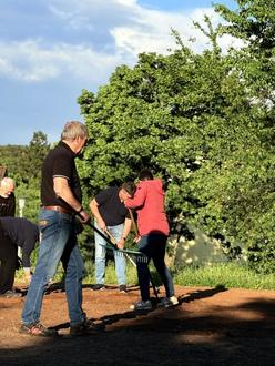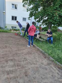 Auch wenn das Boulespielen und die damit verbundenen Tätigkeiten keine ausschließliche Aktivität des LWS sein sollen, waren es doch fast nur LWS-Mitglieder, die sich zu zwei Arbeitseinsätzen trafen, um den benötigten Sand-/Split-Platz von Unkraut zu befreien. Dem Aufruf in der bereits existierenden WhatsApp-Gruppe sind sieben Personen gefolgt: Norbert Fietz, Janusz Wylag, Simone Klundt, Martin Queck, Jens und Alexandra Schlundt. Dank des ausgiebigen Regens an den jeweiligen Tagen zuvor konnte mittels Hacke, Grubber, diversen Harken und behandschuhten Fingern dem ungewollten Grün der Garaus gemacht werden. In Summe war es ein Aufwand von ca. 2,5 Stunden und der Platz gab die nackte Erde preis.