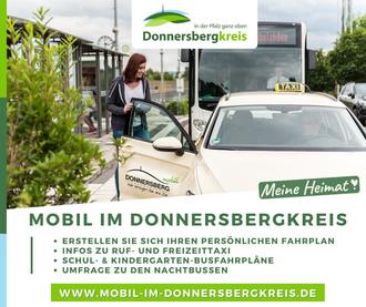 Im Zuge der derzeit laufenden Entwicklung eines Mobilitätskonzeptes für den Donnersbergkreis macht sich auch eine Arbeitsgruppe Kommunikation Gedanken darüber, wie sie das Informationsangebot weiter verbessern kann. Daraus entstanden ist eine neue Seite zum Thema Mobilität. Hier erhalten die Bürgerinnen und Bürger eine Übersicht, welche Angebote es gibt – vom Freizeittaxi bis zu den Kindergarten- oder Schulfahrplänen, es besteht mit Hilfe der Internetseite des Verkehrsverbundes Rhein-Neckar die Möglichkeit, sich einen eigenen Fahrplan zusammenzustellen oder es gibt eine Umfrage, wie sich das Nachtbus-Angebot im Kreis verbessern lässt. Natürlich spielt auch das 9-Euro-Ticket auf der Seite eine Rolle.