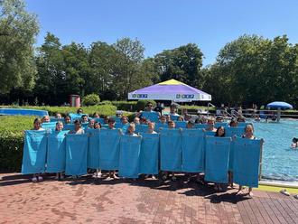 Die Handtücher - gesponsert von der Keep GmbH - sollen die Schülerinnen daran erinnern, dass nach dem Seepferdchen, mit den erworbenen Grundlagen weiteres Training notwendig ist, um sich sicher im Wasser zu bewegen. Auch mit bereits guten Schwimmkenntnissen braucht ein Kind nach dem Schwimmenlernen noch Aufsicht beim Schwimmen. Denn bis ein Kind "wassersicher" ist, sich unter anderem unter Wasser genauso gut zurechtfindet wie über Wasser und 15 Minuten ohne Halt und ohne Hilfen im tiefen Wasser schwimmen kann, braucht es viel Übung und Zeit. Hier sind insbesondere die Eltern und Sorgeberechtigten gefragt.