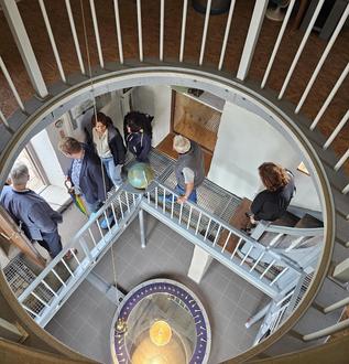 Der erste Programmpunkt führte die Teilnehmenden nach Rockenhausen. Dort beeindruckte das Foucault’sche Pendel im ehemaligen Wasserturm am Bahnhof die Teilnehmenden. Dieses besondere Exponat macht durch seine Bewegung die Erdrotation sichtbar – ein faszinierendes Beispiel für erlebbare Wissenschaft. Anschließend ging es weiter ins Heimatmuseum Rockenhausen. Das zwischen 2017 und 2023 umfassend sanierte Gebäude zeigt sich heute modernisiert und mit einem frischen Ausstellungskonzept. Dauer- und Wechselausstellungen, interaktive Elemente, internationale Gäste und ein lebendiger Zugang zur regionalen Geschichte machen das Museum nicht nur für Einheimische zu einem Ort des Entdeckens und Verstehens. Dabei soll Heimatgeschichte lebendig vermittelt und die Neugier der Besuchenden auf weitere Erkundungen in Rockenhausen und der Umgebung geweckt werden. In Göllheim begrüßte Bürgermeister Zelt die Teilnehmenden im Rathaus. Dort wurde der „Entdeckerpfad Albisheim“ vorgestellt – ein LEADER-gefördertes Vorhaben, das Kindern auf spielerische Weise Naturschutzthemen näherbringt. Der Verein Zellertalaktiv stellte außerdem ihr digitales Audioguide-Vorhaben vor, welches das Zellertal und ihre Weinberge auf eindrucksvolle Weise erlebbar macht. Darüber hinaus wurden zukünftige Ideen des Vereins vorgestellt, die einen Ausblick auf weitere kreative Entwicklungen boten.