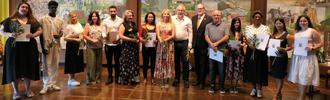 Im Anschluss legten die Teilnehmenden feierlich ihr Bekenntnis zur Verfassung ab. Es folgten die Übergabe der Einbürgerungsurkunden, jeweils begleitet von einer orangefarbenen Gerbera und einem Exemplar des Grundgesetzes. Mit dem gemeinsamen Singen der Nationalhymne, einem Gruppenfoto und herzlichen Glückwünschen klang die Feier aus.