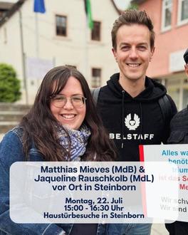 Der Bundestagsabgeordnete Matthias Mieves (SPD) ist im Rahmen seiner Sommertour 2024 in seinem Wahlkreis unterwegs. Gemeinsam mit der Landtagsabgeordneten Jaqueline Rauschkolb (SPD) wird er 22. Juli 2024 von 15:00 - 16:30 Uhr Haustürbesuche machen.