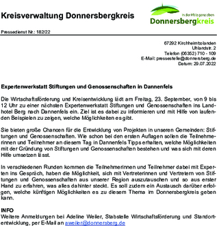 Weitere Anmeldungen bei Adeline Weiler, Stabstelle Wirtschaftsförderung und Standortentwicklung, per E-Mail an aweiler@donnersberg.de