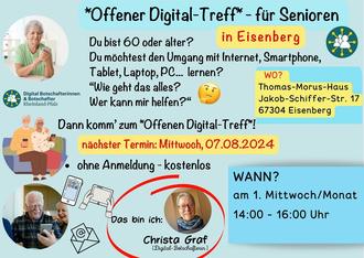 *Offener Digital-Treff – für Seniorinnen/Senioren* – jeden 1. Mittwoch im Monat (14:00 Uhr bis 16:00 Uhr) – im Thomas-Morus-Haus/Eisenberg (Jakob-Schiffer-Str. 17)!