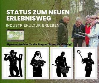 Die ersten Figuren für den Stumpfwaldsteig sind bereits grafisch entworfen worden. Ein Fischzüchter am Eiswoog, ein Eisenbahner im Bockbachtal, eine Nonne am Kloster in Ramsen und ein Holzfäller am ehrwürdigen Stumpfwaldgericht. Die Fundamente werden im Herbst ausgeführt, die Info-Schilder sind derzeit in Arbeit.