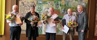 Über 300 Jahre – so lange sind Gisela Mähnert, Detlef Osterheld, Horst Blauth und Gerhard Braun insgesamt schon in all ihren Ehrenämtern tätig. In Anerkennung ihrer Leistungen verlieh Landrat Rainer Guth im Namen von Ministerpräsident Alexander Schweitzer im Beisein der Verbandsgemeinde- und Ortsgemeindebürgermeister sowie der Angehörigen der Geehrten die Ehrennadel des Landes Rheinland-Pfalz. Die Verleihung fand am Montag, den 21. Juli 2025 im großen Sitzungssaal der Kreisverwaltung Donnersbergkreis in Kirchheimbolanden statt.