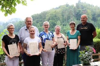 Im Rahmen einer Feierstunde ehrte Bürgermeister Bernd Frey Frau Petra Weiler für ihre 40-jährige Tätigkeit sowie Frau Sabrina Lis und Frau Diana Philippi für ihre 25-jährige Tätigkeit bei der Verbandsgemeinde Eisenberg (Pfalz). Weiterhin verabschiedete Bürgermeister Bernd Frey Frau Beate Bretz-Jerhof sowie Frau Carmela Rosa Lucieri in ihren wohlverdienten Ruhestand.