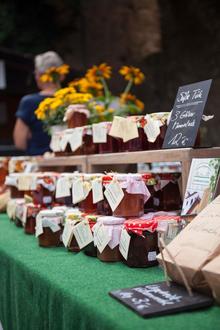 Auf dem Genussmarkt präsentieren zahlreiche regionale Hersteller ihre erlesenen Spezialitäten. Von goldgelbem Honig über herzhafte Wurstwaren bis hin zu edlen Destillaten und fruchtigen Marmeladen – die Auswahl an handverlesenen Delikatessen ist groß und lässt keine Wünsche offen. Neben klassischen Köstlichkeiten wie Brot, Kuchen und Torten gibt es auch außergewöhnliche Produkte rund um die Kirsche, fein abgestimmte Chutneys, fermentierte Nüsse, aromatische Essige und Öle sowie scharfe Chili-Produkte, handgemachte Nudeln und würzigen Senf. Lachs, Fleisch und Wurst aus der Region, Käsespezialitäten und mediterrane Leckereien runden das Angebot ab.
