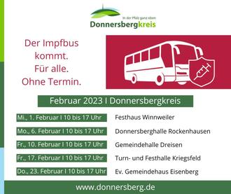 Hier eine Übersicht der Termine des Impfbusses Rheinland-Pfalz im Februar 2023 im Donnersbergkreis: