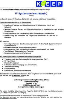 Die KEEP GmbH Eisenberg sucht zum nächstmöglichen Zeitpunkt