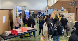 „Wir brauchen Pflege und deshalb ist es mein Anliegen, dass die Kapazitäten der Pflege steigen.“ Mit diesen Worten fasste Gerda Gauer, Job-Aktiv Managerin und Organisatorin der Karrieremesse „Pflege & Gesundheit“ ihre Motivation für die Organisation der Karrieremesse zusammen. Mehr als 25 Pflegefach- und Hochschulen, sowie Pflegeeinrichtungen und präsentierten sich mit Infoständen bei der Ausbildungsmesse und überzeugten die Besucher davon, dass die Vielfalt der Möglichkeiten in diesen Feldern breit ist. Am 06. Oktober fand die Karrieremesse zum 9. Mal in der Berufsbildenden Schule in Rockenhausen statt. Wie in den Jahren zuvor liefen auch in diesem Jahr die organisatorischen Fäden bei Gerda Gauer zusammen, die das enorme Engagement von Eva John, Matthias Frietsch und Lutz Rothe von der Berufsbildenden Schule hervorhob: „Ohne die Berufsbildende Schule wäre die Veranstaltung nicht möglich gewesen.“ Das betonte auch Landrat Rainer Guth, der sich bei allen bedankte, die bei der Messe vertreten oder an der Organisation beteiligt waren. Gefördert wurde die Messe im Rahmen des Entwicklungsprogramms EULLE unter Beteiligung der Europäischen Union und dem Land Rheinland- Pfalz sowie durch das EU-Förderprogramm LEADER. Die Veranstaltung wurde von Schülerinnen und Schülern der berufsbildenden Schule Donnersbergkreis, der integrierten Gesamtschulen Eisenberg und Rockenhausen, der Realschulen plus Rockenhausen, Göllheim, Kirchheimbolanden und Winnweiler sowie des Wilhelm-Erb Gymnasiums besucht. Darüber hinaus nutzen auch ein paar erwachsene Quereinsteiger aus dem Donnersbergkreis die Möglichkeit, mit den Ausstellern ins Gespräch zu kommen. Die Besucherinnen und Besucher erhielten an den Infoständen Einführungen in die wichtigen und bedeutenden Berufsfelder der Pflege und des Gesundheitsbereichs sowie Informationen über die Voraussetzungen für den Einstieg in verschiedene pflegerische Berufe. Einige der teilnehmenden Betriebe präsentierten konkrete Stellenangebote und Bildungsträger stellten Möglichkeiten der Ausbildung vor. Darüber hinaus waren Berufswege wie das duale Studium, familien- oder berufsbegleitende Qualifizierung und berufliche Perspektiven Thema. Jedoch bot die Karrieremesse nicht nur die Möglichkeit sich zu informieren, sondern auch die Möglichkeit typische Tätigkeiten der Berufsfelder auszuprobieren und kennenzulernen. So konnten die Besucherinnen und Besucher am Stand des Gesundheitszentrum Glantal an den eignen Fingern gezeigt bekommen, wie gegipst wird oder am Stand der Berufsbildende Schule Donnersbergkreis eine Blutzuckermessung durchführen lassen. Diese Möglichkeiten nutzen auch Landrat Rainer Guth, der sich über die zahlreichen Besucherinnen und Besucher der Berufsmesse sehr freute und diese als „eines der zentralen Formate, für die Einführung junger Leute in die Berufsfelder der Pflege und des Gesundheitsbereichs Kreisverwaltung Donnersbergkreis im Donnersbergkreis“ bezeichnete. Eine weitere Möglichkeit einen Einblick in die Tätigkeit der Pflege und des Gesundheitsbereichs zu erhalten bot die ökumenische Sozialstation Rockhausen. Anhand einer lebensechten Puppe, die auch während der Ausbildung zum Einsatz kommt, wurde den Besucherinnen und Besuchern gezeigt wie Patienten gewaschen werden, Spritzen verabreicht- oder Stoma gewechselt bekommen. Gerda Gauer freute sich natürlich sehr über den Erfolg der Veranstaltung, und über die vielen neuen Aussteller, die der Karrieremesse in diesem Jahr zum ersten Mal beiwohnten. Auch in den kommenden Jahren möchten sie die Veranstaltung weiter mitorganisieren, wenn es ihre Gesundheit zulässt. Darauf lässt sich hoffen, denn nicht für wenige Anwesende ist Gerda Gauer der entscheidende Faktor für den Erfolg der Karrieremesse. So auch für Susanne Arenz vom Bundesamt für Familie und zivilgesellschaftliche Aufgaben, die in fast jedem Jahr vertreten war, in dem die Veranstaltung stattfand. Der Grund dafür: Gerda Gauer. „Das Engagement von Frau Gauer ist bemerkenswert, sie hat einen ganz besonderen Draht zu den Schülerinnen und Schülern. Für den Erfolg der Veranstaltung ist Frau Gauer maßgeblich verantwortlich.“