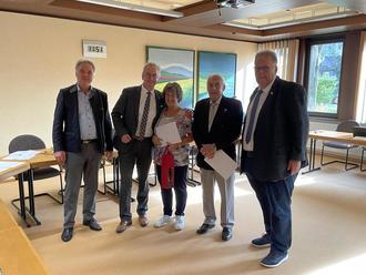 150 kg – in Worten: einhundertfünfzig Kilogramm – Mehl. Mit dieser Menge gemahlenen Getreides wird das bewundernswerte und jahrzehntelange ehrenamtliche Engagement von Margarete und Renaldo Trum anschaulich. Ein jedes Jahr im Herbst kauft Margarete Trum 150 kg Mehl und backt damit in der Vorweihnachtszeit und zu vielen anderen Anlässen unzählige Weihnachtsplätzchen sowie Torten und Kuchen. Diese verkauft oder spendet sie dann für gemeinnützige und wohltätige Zwecke. Ihr Mann Renaldo Trum steht ihr in nichts nach. Er engagiert sich u.a. seit 1967 bei der Freiwilligen Feuerwehr Eisenberg und ist seit 1965 beim MGV „Liederkranz“ aktiv. Beispielhaft verdeutlichen diese Schlaglichter auf die langjährigen ehrenamtlichen Aktivitäten des Ehepaars den unschätzbaren Dienst von Margarete und Renaldo Trum für die Gemeinschaft. In Anerkennung ihrer Leistungen verlieh Landrat Rainer Guth am 31. Oktober 2023 Margarete und Renaldo Trum im Na- men von Ministerpräsidentin Malu Dreyer bei einer Feierstunde im Kreishaus in Kirchheimbolanden die Ehrennadel des Landes Rheinland-Pfalz. Zu Ehren von Margarete und Renaldo Trum richteten neben Rainer Guth am 31. Oktober auch Bernd Frey, Bürgermeister der Verbandsgemeinde Eisenberg, Peter Funck, Bürger- meister der Stadt Eisenberg, und Eberhard Fuhr, Brand- und Katastrophenschutzinspekteur des Donnersbergkreises, dankbare und lobende Worte an das Ehepaar. Sie würdig- ten Renaldo Trum für seine Tätigkeit bei der Freiwilligen Feuerwehr Eisenberg (ab 1976 als Wehrführer und ab 1981 als Wehrleiter sowie Kreisausbilder Atemschutz und Funk), für seine langjährige Mitgliedschaft im Stadtrat der Stadt Eisenberg und in verschiedenen Ausschüssen sowie für seine überdurchschnittlich aktive Mitgliedschaft und seine Ämter im MGV „Liederkranz“ 1862. e.V. Eisenberg. Neben den oben erwähnten Back-Aktivitäten für den guten Zweck ist Margarete Trum seit 1982 ununterbrochen Schatzmeisterin des MGV „Liederkranz“ und war Gründungsmitglied der 1991 ins Leben gerufenen Square Dance-Tanzgruppe „Sandhoppers“ Eisenberg, bei der sie und ihr Mann bis heute aktiv sind. Beide Eheleute haben zudem die Eisenberger „Brücke“ vorbildlich unterstützt und haben sich bei vielen Reisen und Festen im Bereich der Partnerschaft der Stadt Eisenberg aktiv beteiligt. Bescheiden und freudig nahmen Renaldo und Margarete Trum die Auszeichnungen entgegen. „Das Engagement ist durch die Vereine gewachsen und macht uns Spaß“, so das Ehepaar. „Wir haben uns gegenseitig unterstützt, und wenn wir etwas Gutes tun und die Leute sich dann freuen, freuen wir uns auch.“ Kreisverwaltung Donnersbergkreis Die Ehrennadel des Landes Rheinland-Pfalz Die Ehrennadel des Landes Rheinland-Pfalz wird für eine mindestens zwölfjährige ehrenamtliche Tätigkeit in der kommunalen, sozialen, wissenschaftlichen oder wirtschaftlichen Selbstverwaltung, in Vereinigungen mit sozialen oder kulturellen Zwecken oder für ver- gleichbare Tätigkeiten verliehen.