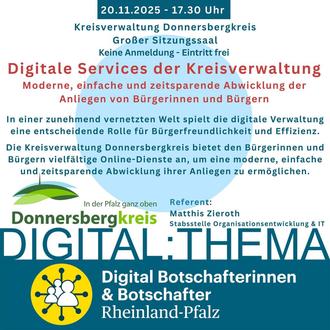 Die Kreisverwaltung Donnersbergkreis bietet den Bürgerinnen und Bürgern vielfältige Online-Dienste an, um eine moderne, einfache und zeitsparende Abwicklung ihrer Anliegen zu ermöglichen. Welche Dienste sind das und wie kann ich sie nutzten? Wer kann mir dabei helfen?