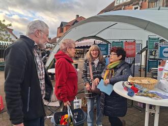 Die Teilnahme von so vielen Organisationen am Samstag auf dem Wochenmarkt in Eisenberg ist Tonja Loureiro und Eva Müller von den Gemeindeschwestern plus zu verdanken. Sie haben die Werbetrommel kräftig gerührt und machten den Tag zu einem besonderen Tour-Stopp. Der Verein Bürger für Bürger, der VdK-Ortsverband, die Digitalbotschafterin Eisenbergs, Verena Gojek, der Förderverein römischer Vicus, die Eisenberger Brücke und die Initiative „Zeit zu verschenken“ waren am Stand anzutreffen. Inmitten von Gemüseständen, Eierverkäufern und dem Honigstand strömten zahlreiche Bürgerinnen und Bürger Eisenbergs zum grünen Viel-Gut-Tour-Zelt. Es wurden viele Gespräche geführt, sich untereinander vernetzt und ein paar Freiwillige gewonnen. Rundum war der letzte Stopp der Tour ein voller Erfolg.