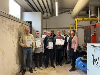 Die Hausmeister trafen sich aus diesem Grund zwei Tage lang zu einer Schulung „Optimierung der Heizungsanlage“, die vom Klimaschutzmanagement und dem Gebäudemanagement der Kreisverwaltung organisiert wurde. Ziel war es, vor Ort Methoden durchzusprechen und zu veranschaulichen, wie man durch kleine, nicht investive Maßnahmen den Heizungsbetrieb energetisch optimieren kann. Denn so vielfältig die Aufgaben eines Hausmeisters sind, so unterschiedlich sind auch die Heizungsanlagen der einzelnen Standorte. Von Passivbauweise des Schulgebäudes über ein integriertes Blockheizkraftwerk bis hin zu Heizungsanlagen mit Optimierungsbedarf.