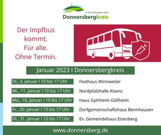 Hier eine Übersicht der Termine des Impfbusses Rheinland-Pfalz im Januar 2023 im Donnersbergkreis: