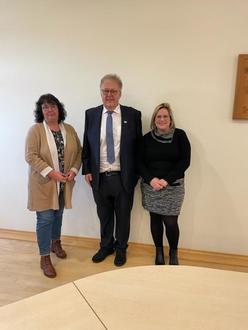 Bürgermeister Frey und Personalratsvorsitzender Schmidt bedankten sich bei den beiden Mitarbeiterinnen für ihr langjähriges Engagement zum Wohle der Bevölkerung der Verbandsgemeinde Eisenberg (Pfalz) und wünschten alles Gute für die Zukunft.