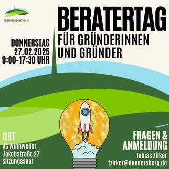 In Kooperation mit dem GründerInstitut Labenski lädt die Wirtschaftsförderung der Kreisverwaltung Donnersbergkreis am Donnerstag, 27. Februar 2025 von 9:00 bis 17:30 Uhr, zu kostenlosen Beratung für Gründerinnen und Gründer in die Verbandsgemeindeverwaltung Winnweiler (Jakobstraße 29, 67722 Winnweiler) ein.