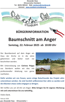 Wir treffen uns um 10 Uhr am Anger. Bitte bringen Sie ihr eigenes Werkzeug mit und unterstützen Sie uns tatkräftig..