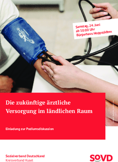 Der Kreisverband Kusel (SoVD Rheinland-Pfalz / Saarland) lädt die Bürger/innen zu einer Podiumsdiskussion am 24.6.23 ab 10.00 Uhr ins Bürgerhaus nach Hoppstädten ein.