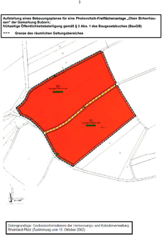 Der Ortsgemeinderat von Buborn hat die Aufstellung eines Bebauungsplanes für eine Photovoltaik-Freiflächenanlage „Oben Birkenhausen“ beschlossen und führt nunmehr auf der Grundlage des vom Planungsbüro BBP, Kaiserslautern, aufgestellten Vorentwurfes dieses Bebauungsplanes, in der Planfassung „April 2024“, die frühzeitige Öffentlichkeitsbeteiligung gemäß § 3 Abs. 1 BauGB durch.