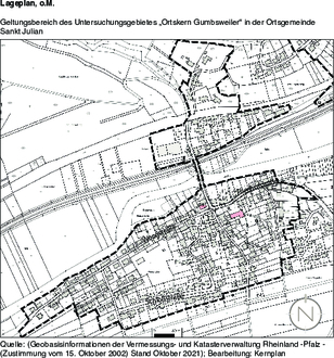Der Gemeinderat der Ortsgemeinde Sankt Julian hat in öffentlicher Sitzung am 29.06.2022 gemäß § 141 Abs. 3 BauGB in der Fassung der Bekanntmachung vom 03. November 2017 (BGBI. I S. 3634), unter Berücksichtigung der aktuell gültigen Änderungen, den Beginn der Vorbereitenden Untersuchungen zur Prüfung der Sanierungsbedürftigkeit für das Untersuchungsgebiet „Ortskern Gumbsweiler“ beschlossen: