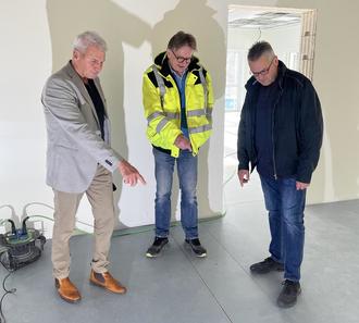 v.l.: Bauherr und Bürgermeister Andreas Müller, Bauleiter Dipl. Ing. Klaus Wagner und VG-Mitarbeiter Andreas Kreft