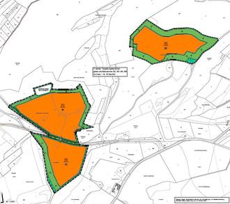 Das Plangebiet umfasst zwei Teilgeltungsbereiche. Teilgeltungsbereich 1 hat eine Größe von ca. 6,9 ha. Im Einzelnen betroffen ist voraussichtlich die Teilfläche des Grundstücks Flur 6, Flst. Nr. 207. Teilgeltungsbereich 2 hat eine Größe von ca. 12,8 ha. Im Einzelnen betroffen sind die Grundstücke Flur 2, Flst. Nr. 3/1 sowie die Teilflächen 3/4, 5/4, 6/1, 11, 12/1, 12/2, 12/3 und 17/2 der Gemarkung Homberg.