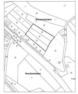 Der vorgesehene räumliche Geltungsbereich des Bebauungsplans „Schaeresäcker“ umfasst voraussichtlich rund 2.500 m² und liegt westlich der Hauptstraße Richtung Hefersweiler. Betroffen sind die Grundstücke Flurstück-Nr. 727/6, 727/7 und 727/8 der Gemarkung Reipoltskirchen.