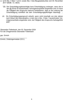 | (4) | Ein Entschädigungsanspruch erlischt, wenn nicht innerhalb von drei Jahren nach Ablauf des Kalenderjahrs, in dem die in Abs. 3 Satz 1 bezeichneten Vermögensnachteile eingetreten sind, die Fälligkeit des Anspruchs herbeigeführt wird.“ |