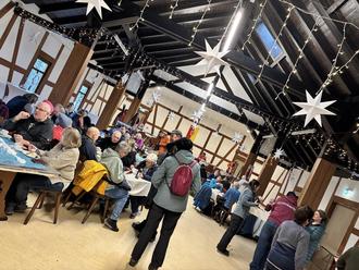 Die niedrigen Temperaturen sorgten dafür, dass die Verpflegung unterwegs mit heißem Glühwein und frisch Gegrilltem bei „Bennersch“ in Merzweiler umso besser schmeckte. Die hervorragend organisierte Veranstaltung fand ihren Abschluss im Dorfgemeinschaftshaus in Grumbach. In den mit viel Liebe zum Detail dekorierten Räumlichkeiten genossen die Wanderer das gemütliche Beisammensein bei hausgemachter Kartoffelsuppe, Berlinern und selbstgebackenen Kuchen und ließen den Tag entspannt ausklingen.