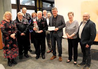 Diese beachtliche ehrenamtliche Lebensleistung im Dienste der Feuerwehr und damit auch aller Bürgerinnen und Bürger der Gemeinde Quierschied würdigte Bürgermeister Maurer mit den Worten: „Während seiner gesamten Dienstzeit als Wehrführer hat Herr Franz die Freiwillige Feuerwehr Quierschied mit viel Herzblut zu einer sehr gut organisierten und schlagkräftigen Einheit ausgebaut. Wichtig war ihm dabei vor allem die Ausbildung des Nachwuchses, die er durch den Ausbau der Jugendwehr forcierte, und die technische Ausstattung der Gerätehäuser und auch der Mannschaften. Sie auf dem neuesten Stand zu halten und somit die Einsatzmöglichkeiten kontinuierlich und entscheidend zu verbessern, ist ihm über die Jahre stets gelungen. Dazu gehörte auch die Modernisierung der Gerätehäuser und die Beschaffung moderner Einsatzfahrzeuge in allen drei Gemeindebezirken. Ganz besonders förderte und prägte Herr Franz aber die Kameradschaft und Zusammenarbeit der damals noch drei Löschbezirke in der Gemeinde. Dies in einer Zeit, in der den Kameradinnen und Kameraden die Eigenständigkeit noch wichtiger war als heute. Dass sich diese weit verbreitete Haltung in der Gemeinde Quierschied grundlegend geändert hat und die Zusammenarbeit aller Wehrleute in der Gemeinde so herausragend funktioniert, ist auch ein Ergebnis seines Engagements in dieser Sache. Seine Fähigkeit als Wertevermittler, auch zwischen unterschiedlichen Generationen, hat ihm dabei geholfen. Sein Wort hatte immer Gewicht – bei den jungen und auch bei den erfahrenen Wehrleuten in der Gemeinde. Insofern war es für mich keine Überraschung, dass die Wahl von Herrn Franz zum Ehrenamtspreisträger einstimmig erfolgt ist und ich ihm heute diesen tollen Preis überreichen darf. Lieber Karl, ich bedanke mich im Namen aller Bürgerinnen und Bürger der Gemeinde Quierschied für dein jahrzehntelanges Engagement und gratuliere dir recht herzlich.“