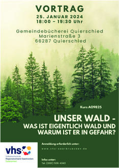Die vhs-Quierschied ist die Volkshochschule (vhs) vor Ort der vhs Regionalverband Saarbrücken. Unter www.vhs-saarbruecken.de finden Sie unsere aktuell angebotenen Veranstaltungen. Das Programm Frühjahr/Sommer 2024 erscheint am 05.02.2024, Kursbeginn ist 26.02.2024.