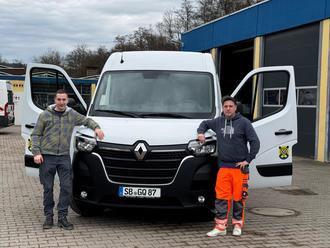 Die Aufgaben des Baubetriebshofs der Gemeinde Quierschied sind vielfältig. Um diese künftig noch besser bewältigen zu können, wurde vor kurzem mit einem Renault Master ein zusätzliches Fahrzeug angeschafft. Darüber freuen sich nicht nur KfZ-Mechatroniker Tim Schäfer (links im Bild) und Maler Lukas Dietz (rechts), sondern auch der Leiter des Baubetriebshofs, Mario Morreale. Er bedankt sich im Namen seiner Mitarbeiter beim Gemeinderat, der diese wichtige Anschaffung ermöglich hat.