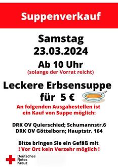 Das DRK kocht am Samstag, 23.03.24 wieder leckere Erbsensuppe.