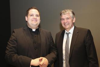 Auch Bürgermeister Lutz Maurer nahm an den Feierlichkeiten teil und richtete in der Q.lisse ein Grußwort an die Anwesenden: „Nicht nur als Bürgermeister, sondern auch ganz persönlich als Katholik und interessierter Bürger ist es mir wichtig, heute an dieser Gründungsfeier teilnehmen zu können“, sagte Maurer. Viele Katholiken in der Gemeinde hätten sich gewünscht, dass die bisherigen Pfarreien in Quierschied, Fischbach-Camphausen und Göttelborn erhalten worden wären, „aber die gesamte Entwicklung war wie sie alle wissen - eine andere“, sagte Maurer und ergänzte: „Ich bin der festen Überzeugung: Mit einer Bündelung der vorhandenen Kräfte und der Konzentration auf das Wesentliche kann es auch der neuen Pfarrei Quierschied St. Barbara gelingen, die Menschen in der Gemeinde auf eine neue Art zu erreichen. Wann soll dies besser gelingen als rund um das Osterfest, dem Fest der Auferstehung?!“ Vielleicht bestehe gerade jetzt und im Kontrast zur von Schnelllebigkeit und Individualismus geprägten Entwicklung die Chance, den Glauben und auch die Institution der Kirche als etwas Beständiges, Wertegebundenes entgegenzusetzen: „Ich denke schon, dass viele Menschen das Bedürfnis nach solchen sozialen Ankern haben und dass die Kirche nach wie vor eine wichtige gesellschaftliche Funktion hat“, sagte Maurer und betonte: „Vorausgesetzt, die Kirche ist auch bereit sich weiterzuentwickeln, sich zu modernisieren und vielleicht sogar manches neu zu denken.“