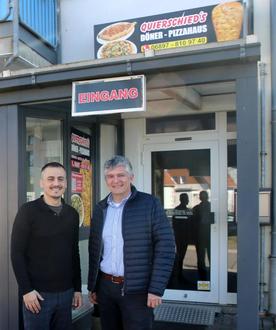 Bürgermeister Lutz Maurer (rechts) besuchte Alan Yildiz in "Quierschied's Döner-Pizzahaus"