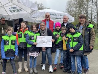 Danach wurde ein Osterfeuer mit hilfe des Pastors Seel und der Leiterin des Kinderhospiz entzündet und eine Spende von 250 Euro an den Hospiz überreicht.