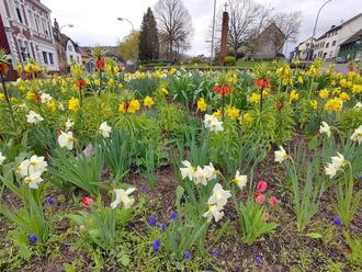 Nicht nur an Ostern, sondern auch noch darüber hinaus sind die farbenfroh bepflanzten öffentlichen Blumenbeete in der Gemeinde echte Hingucker! Der Dank des Bürgermeisters Lutz Maurer gilt den Mitarbeiterinnen und Mitarbeitern des Baubetriebshof der Gemeinde: „Jetzt fehlt nur noch das dazu passende Wetter“, findet Bürgermeister Maurer.