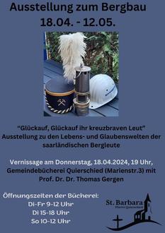 Hiermit laden wir Sie zur Ausstellungseröffnung am Donnerstag, 18. April 2024 um 19 Uhr in die Gemeindebücherei Quierschied ein. Prof. Dr. Dr. Thomas Gergen (Vorsitzender der Kommission für Saarländische Landesgeschichte) wird in die Ausstellung einführen.