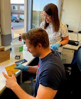 Verwaltungs-Mitarbeiterin Jasmin Eiler unterstützte den Arzt Joshua Bastian bei der Impf-Aktion.