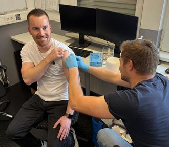 Feuerwehrmann Alexander Paul nutzte die Gelegenheit für den wichtigen „Piks“.