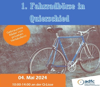 Dann kommen Sie ab 10:00 zur Q-Lisse. Auf dem Platz vor der Q-Lisse können Sie die Räder anschauen und durch die ehrenamtlichen Helfer/innen der ADFC-Regionalgruppe beraten werden. Eine Probefahrt ist auf einem Teil des Platzes möglich. Sie können sich das Rad, dass Sie kaufen möchten, dabei genau anschauen und testen. Bitte denken Sie daran, dass es sich hierbei um ein gebrauchtes Rad einer Privatperson handelt. Gebrauchspuren und normale Abnutzung sind dabei zu erwarten und kein Grund für spätere Reklamationen.