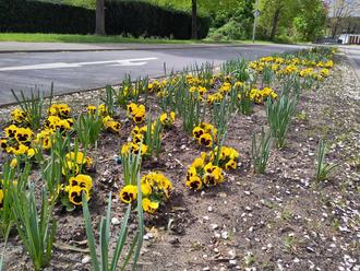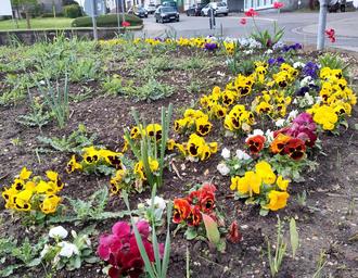Nicht nur an Ostern, sondern auch noch darüber hinaus sind die farbenfroh bepflanzten öffentlichen Blumenbeete in der Gemeinde echte Hingucker! Der Dank des Bürgermeisters Lutz Maurer gilt Gemeinde-Gärtner Dieter Klein, Gemeinde-Gärtnerin Carina Peter sowie den Mitarbeiterinnen und Mitarbeitern des Baubetriebshofs der Gemeinde. Sie haben die Beete aktuell mit Stiefmütterchen, Osterglocken und insektenfreundlichen Vergissmeinnicht-Blumen bepflanzt. Es handelt sich um die Frühlingsbepflanzung zum Übergang